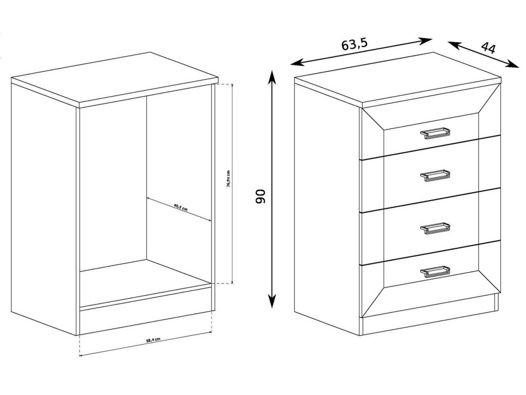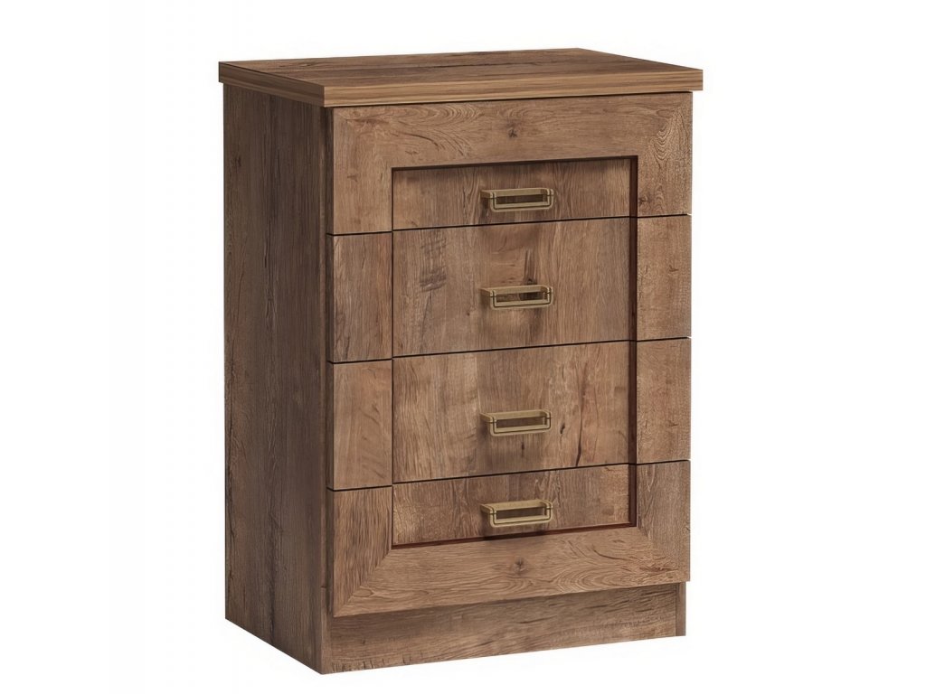 Komoda ze sektorové řady. Komoda má 4 praktické zásuvky. Systém je exkluzivní kolekce navržena v duchu vintage. Celá řada se vyznačuje elegancí a jednoduchými tvary, které zaručují plné využití prostoru. Nábytek je vyroben z velmi kvalitní LTD o tloušťce 16 mm, horní deska zesílena na 32 mm, lišty na čele nábytku jsou MDF, hrany ABS. Tvrzené sklo ve vitrínách je jemně zdobené. Elegantní úchyty jsou z kovu. Barevné provedení dub lefkas. Dodáváme v demontovaném stavu.Doplňkové parametry