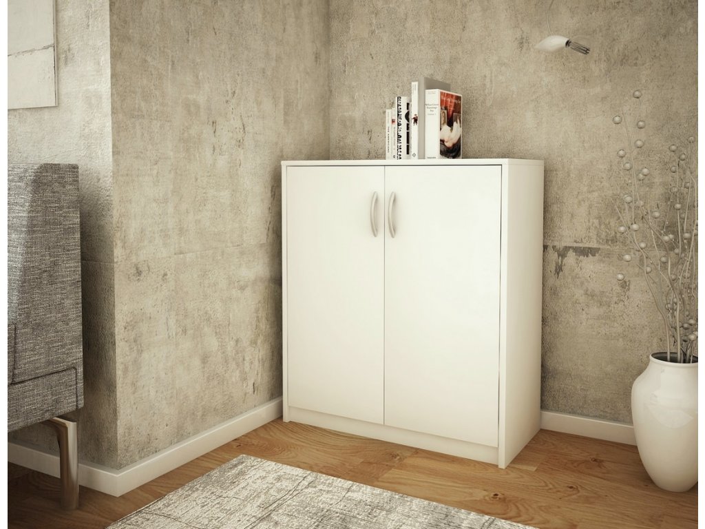 Komoda dvoudveřová v moderním provedení. Korpus i dvířka jsou z kvalitní LTD v barvě bílá. Lamino je odolné vůči vysokým teplotám, poškrábání a nárazům, hraněné ABS páskou. Jasně viditelná struktura dřeva. Dodáváme v demontovaném stavu.Doplňkové parametry