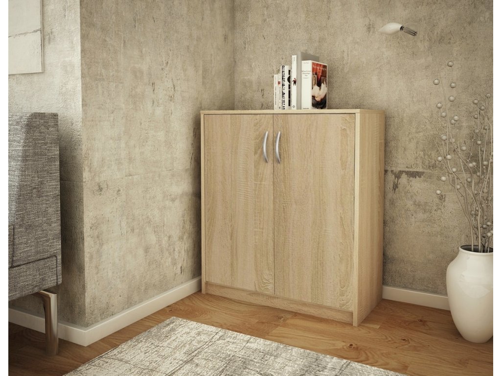 Komoda dvoudveřová v moderním provedení. Korpus i dvířka jsou z kvalitní LTD v barvě dub sonoma. Lamino je odolné vůči vysokým teplotám, poškrábání a nárazům, hraněné ABS páskou. Jasně viditelná struktura dřeva. Dodáváme v demontovaném stavu.Doplňkové parametry