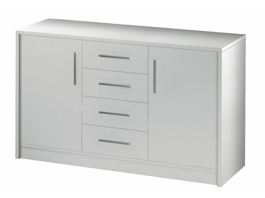 Komoda dvoudveřová se 4 zásuvkami v moderním provedení. Korpus i dvířka jsou z kvalitního LTD v barvě matná bílá. Dodáváme v demontovaném stavu.Doplňkové parametry