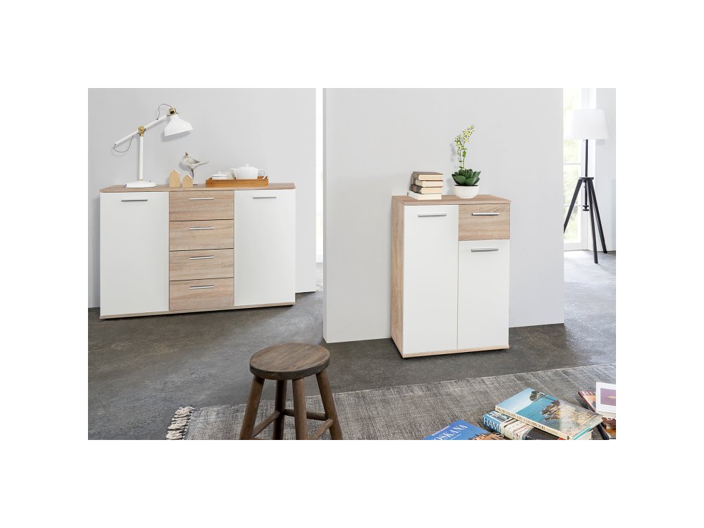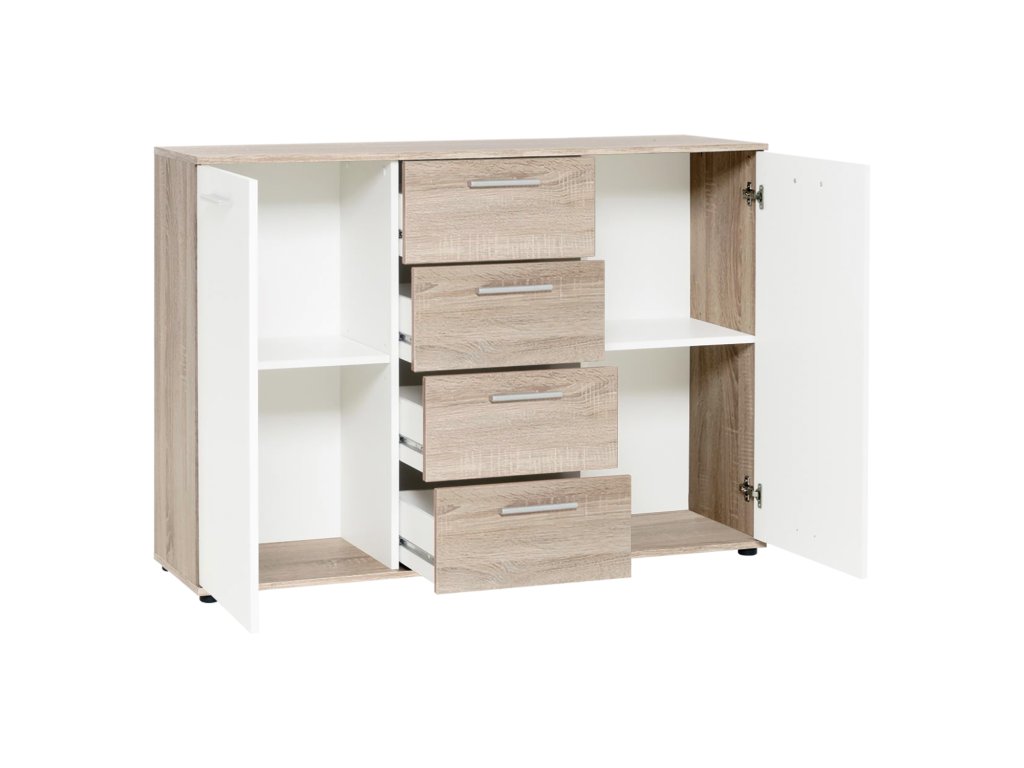 barevné provedení dub Sonoma / bílá 4 zásuvky s kovovými pojezdy 2 dvířka, 2 variabilní policeDoplňkové parametry