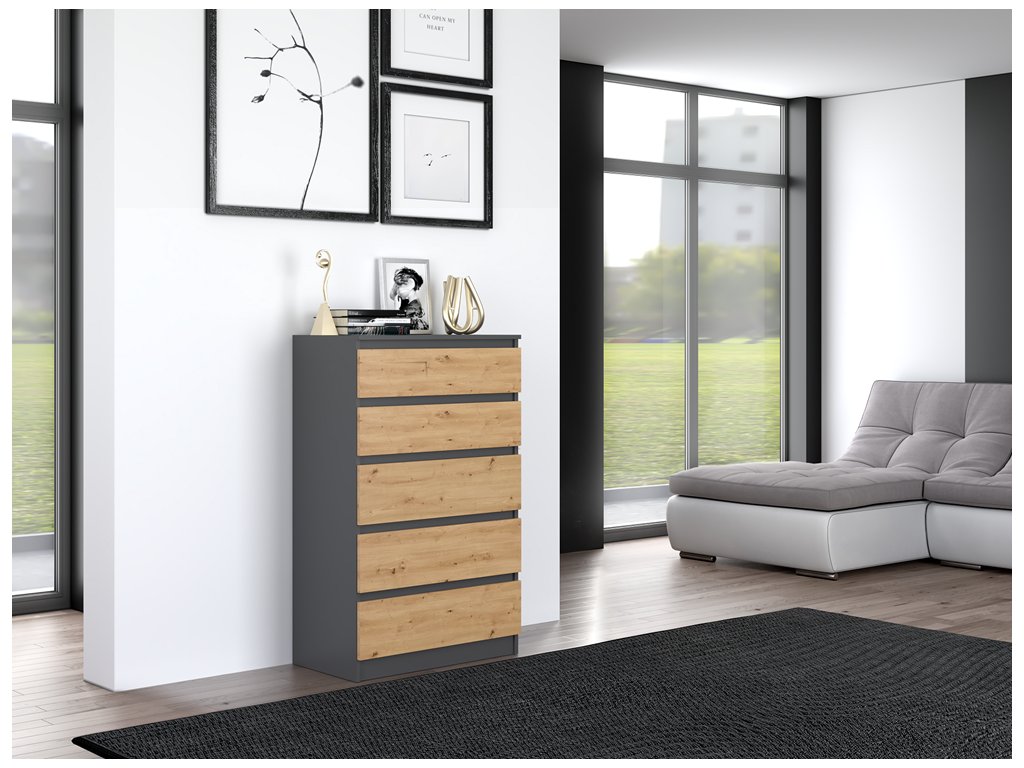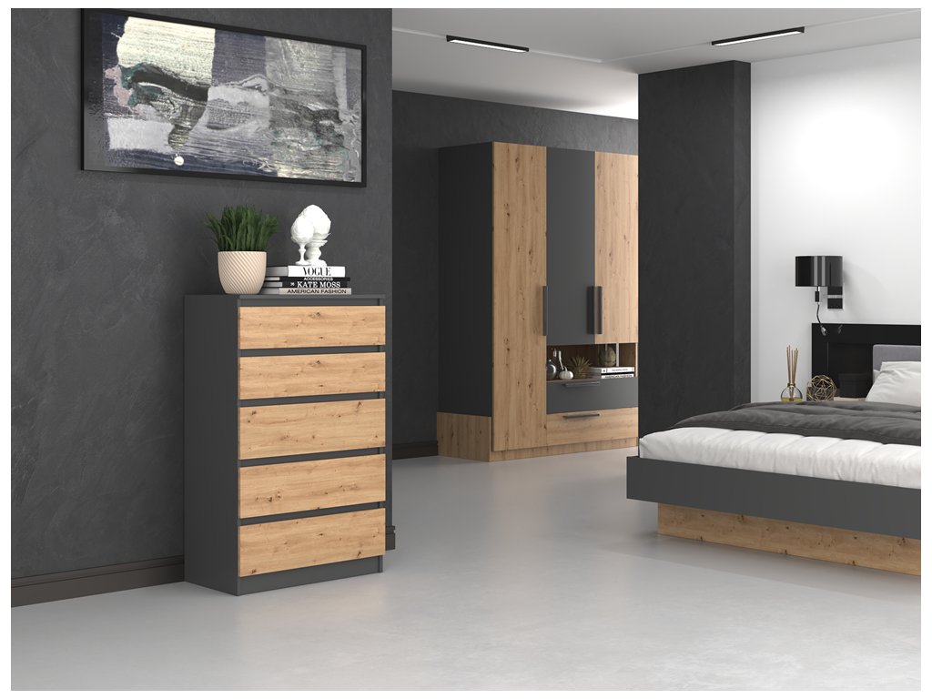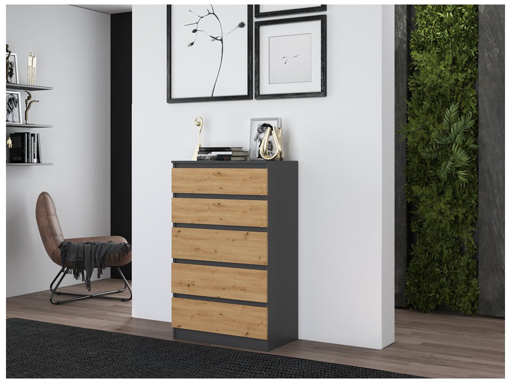 Komoda Malvína M5 antracit/dub artisan
