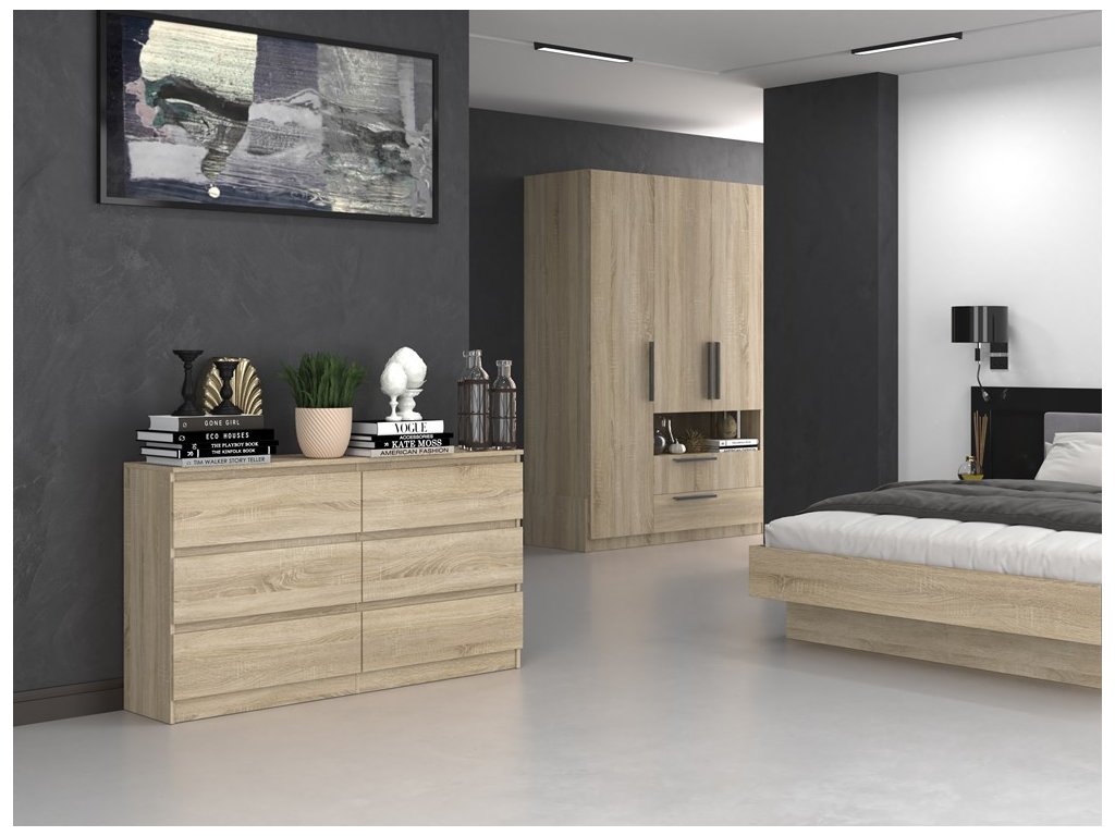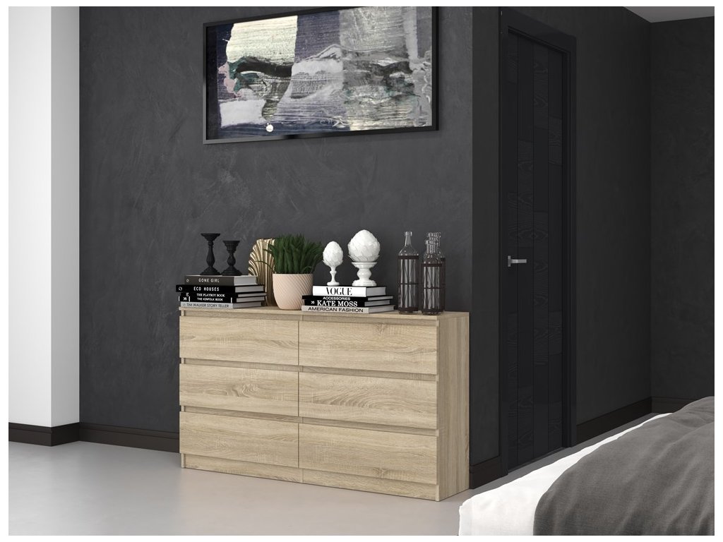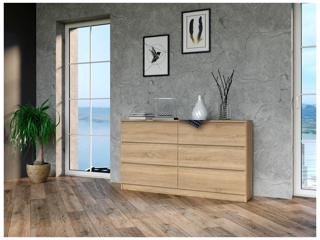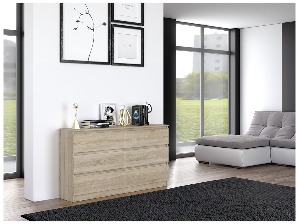 Nadčasová komoda Malvína v minimalistickém designu nabízí díky svému provedení dostatek úložného prostoru a univerzální použití v kterékoliv místnosti vašeho bytu či domu. Bezúchytková čela zásuvek zajistí pohodlné používání a dokreslí moderní a útulný charakter vašeho interiéru. Komoda je vyrobena ze snadno udržovatelného lamina, hrany jsou zakončené vysoce odolným ABS materiálem.