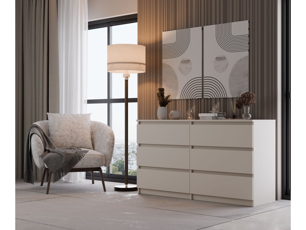 Komoda 6 zásuvek TORINO bílá, kovové úchytky
