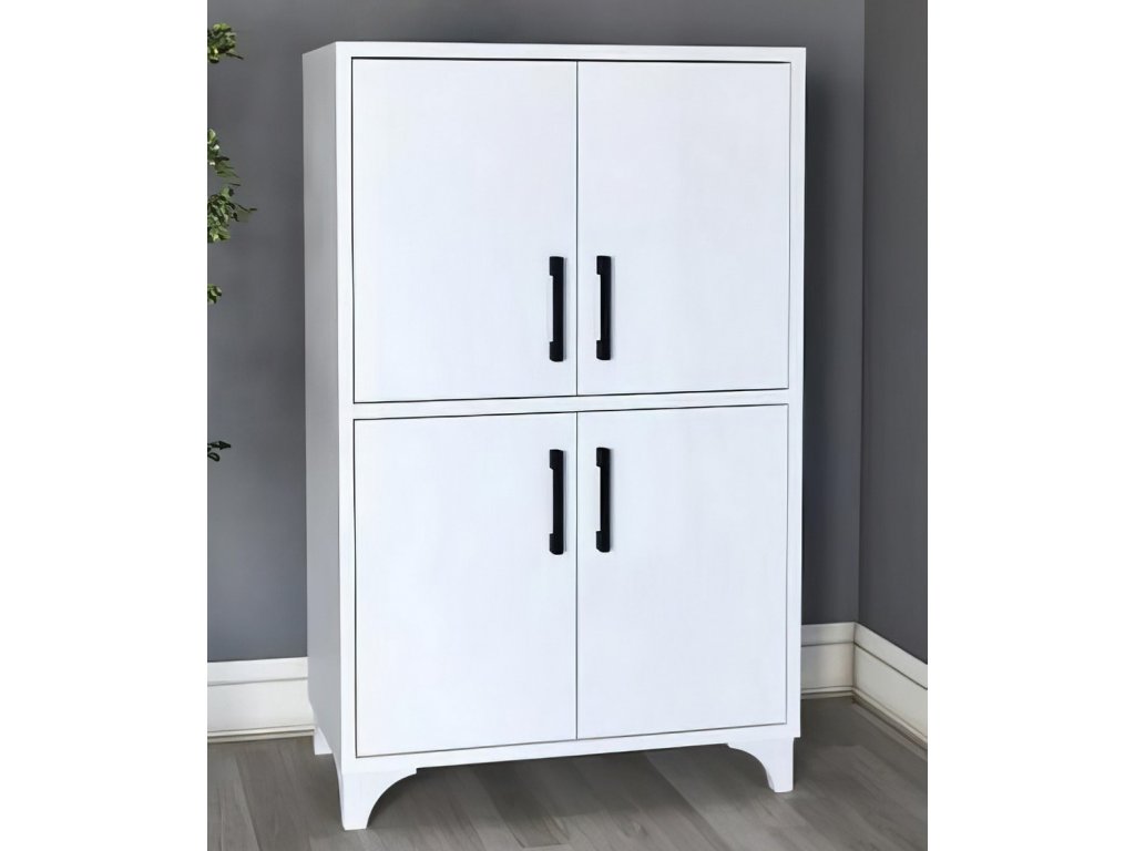 Čtyřdveřová nízká komoda je vyrobena z kvalitní desky LTD nenáročné na údržbu, v barevném provedení bílá. Tloušťka materiálu - 18 mm. Dodáváme v demontovaném stavu.Doplňkové parametry