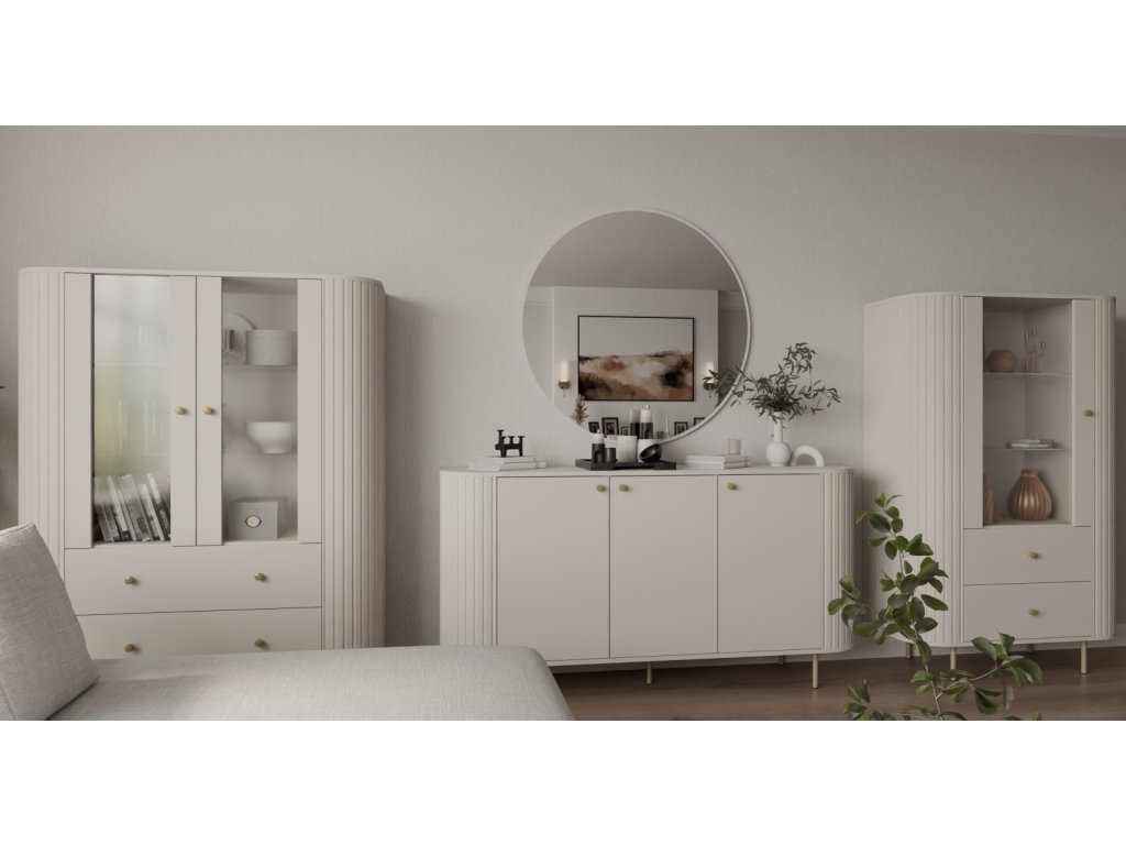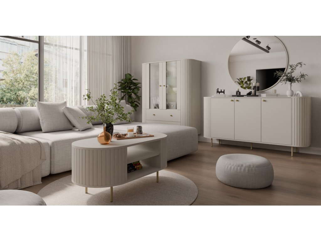 Objevte kolekci nábytku Orvelo, která představuje minimalismus ozvláštněný precizními frézovanými detaily a vnáší do interiéru zcela nový rozměr elegance. Barevné provedení v jemných zemitých odstínech tvoří harmonický základ, černé a zlaté akcenty dodají lehkost a moderní charakter. Kolekce byla navržena tak, aby každý prvek – od vitrín a komod až po konferenční stolky a TV skříňky – mohl být použit samostatně a zároveň ladil jako celek.