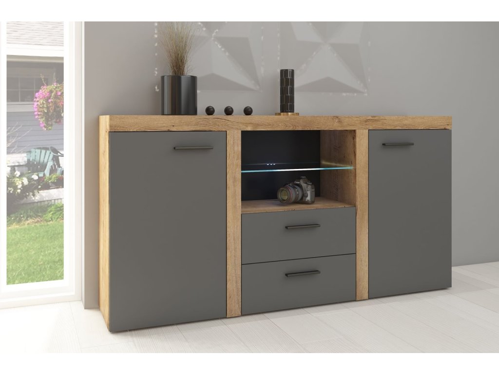 Komoda PUERTO 2D2S dub lefkas/grafit