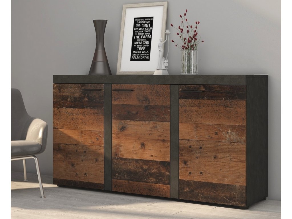 Komoda třfídveřová v moderním provedení. Korpus je vyroben z kvalitního lamina v barvě matera (černošedá), dvířka jsou vyrobena v barvě dub old style. Úchyty jsou plastové černé. Dodáváme v demontovaném stavu.Doplňkové parametry