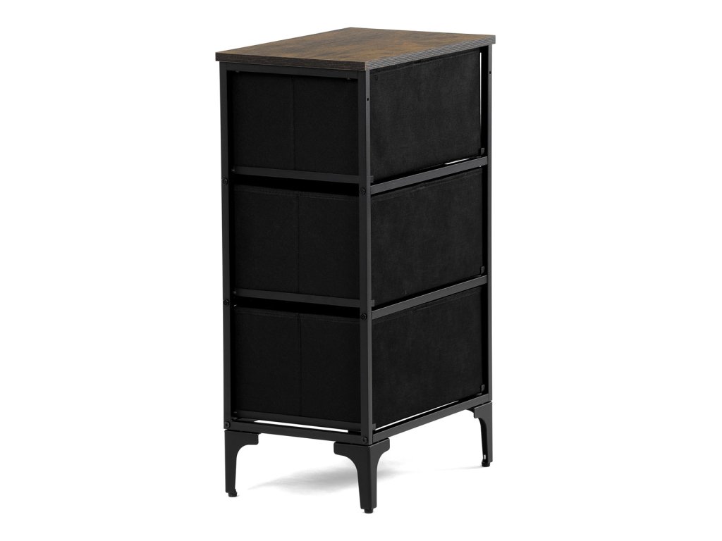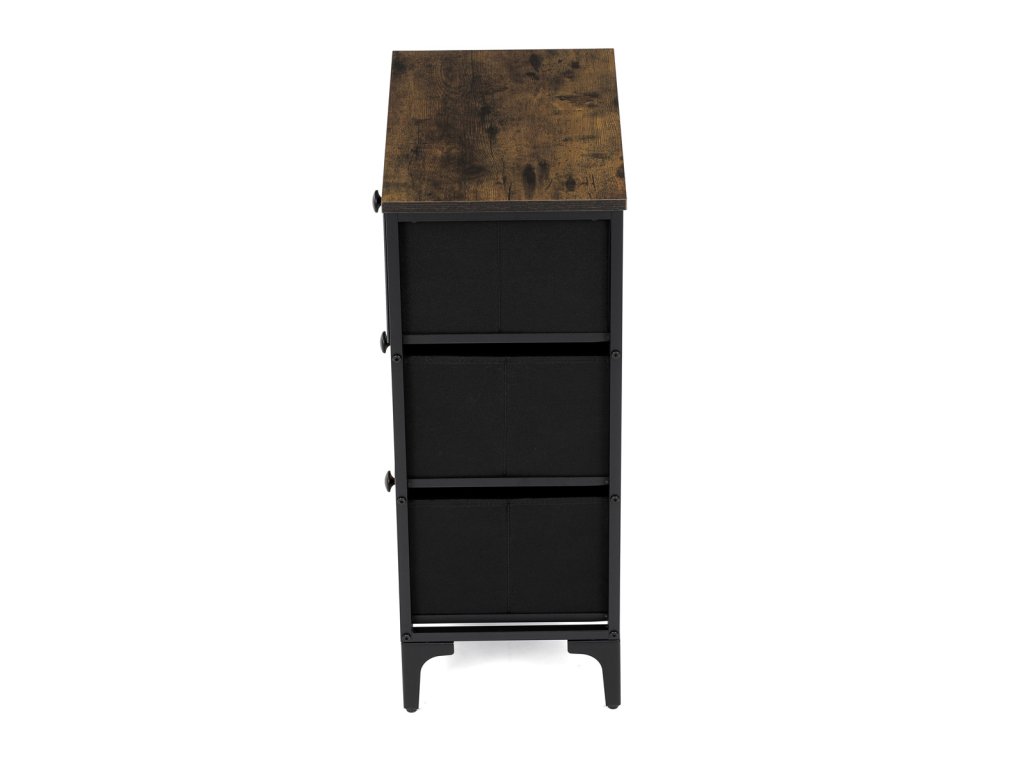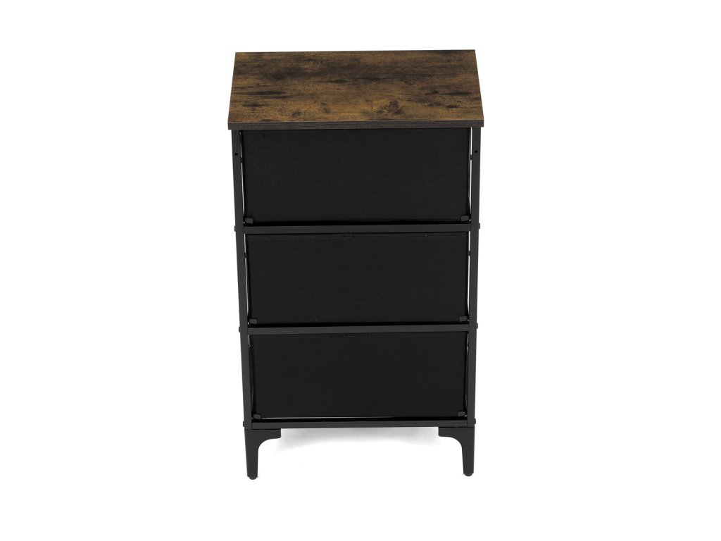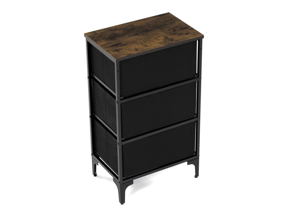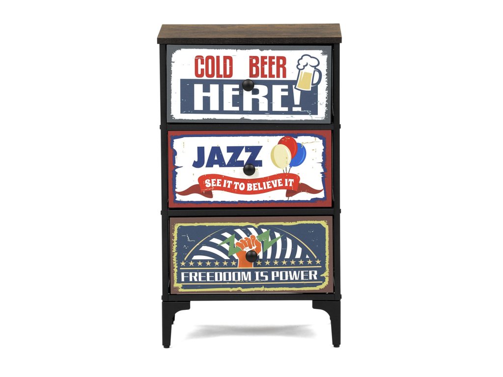 Retro komoda značky Autronic přinese do vašeho interiéru jedinečný styl a originalitu. Textilní čela zásuvek s výplní HDF a vintage potiskem navozují atmosféru starých amerických barů a jazzových klubů. Kombinace černé kovové konstrukce, desky v dekoru starého dřeva a zdobných noh dodává nábytku robustní, ale zároveň elegantní vzhled. Korpus zásuvek je vyroben z netkané textilie s výplní HDF, což zajišťuje jejich lehkost a snadnou manipulaci. Ideální doplněk do obývacího pokoje nebo stylové kavárny, kde se stane nepřehlédnutelným prvkem.Doplňkové parametry