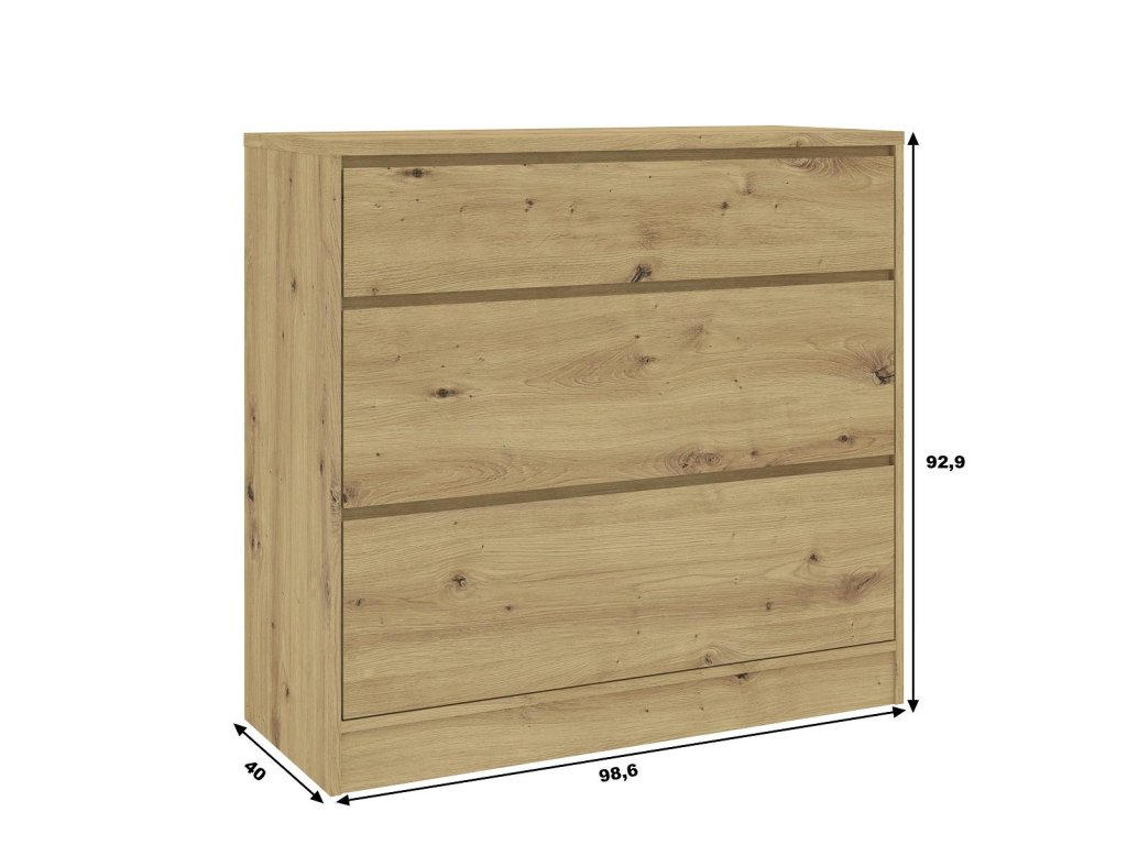 Komoda se třemi zásuvkami je vyrobena z kvalitní LTD v barevném provedení dub artisan. Dodáváme v demontovaném stavu.Doplňkové parametry