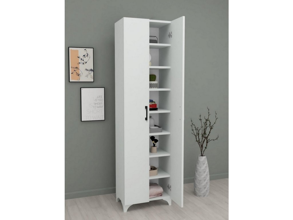 Dvoudveřová vysoká komoda je vyrobena z kvalitní LTD desky, která je nenáročná na údržbu. Tloušťka desky - 18 mm. Uvnitř komody jsou police. Barevné provedení je bílá. Dodáváme v demontovaném stavu.Doplňkové parametry