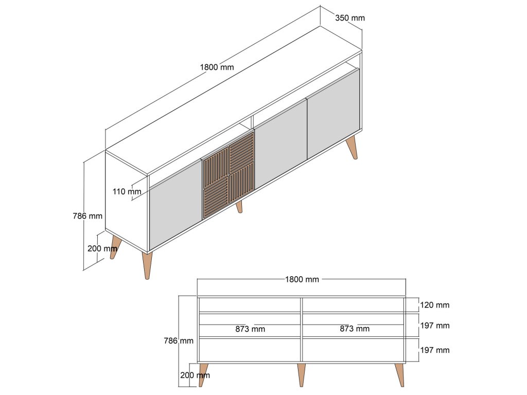 S šířkou 180 cm, výškou 78,6 cm a hloubkou 35 cm nabízí tato komoda dostatek prostoru pro vystavení vašich cenných věcí a její kompaktní design zajišťuje, že se bez problémů vejde do každé místnosti. 17cm plastové nohy poskytují komodu stabilitu a zvyšují její vzhled, čímž dodávají jejímu celkovému vzhledu nádech sofistikovanosti.