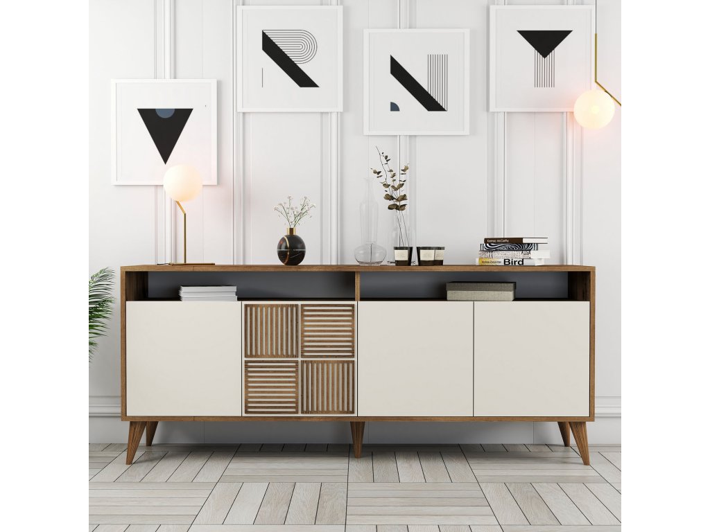 Milan komoda na nožičkách, ořech / krémová