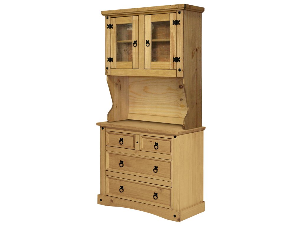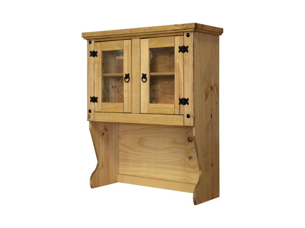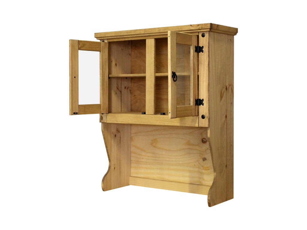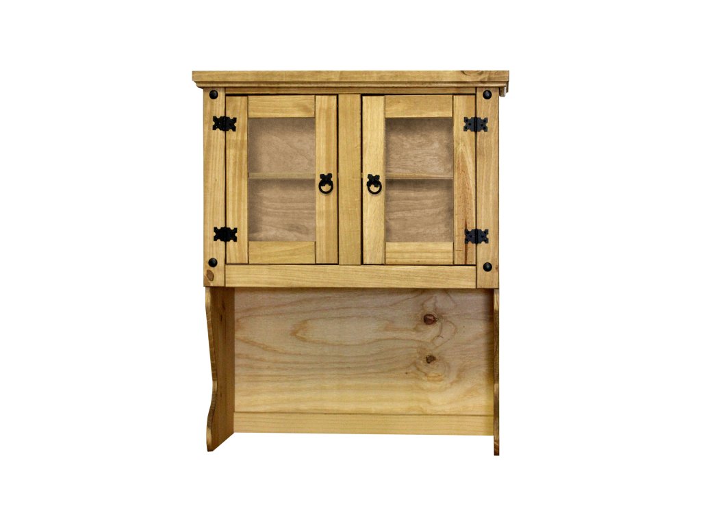 materiál masiv borovice voskovaná v medovém odstínu 2 prosklená dvířka, 1 police, kovové ozdobné úchytky vhodný doplněk ke komodě CORONA 16263 nebo 1631 součást sestavy CoronaDoplňkové parametry