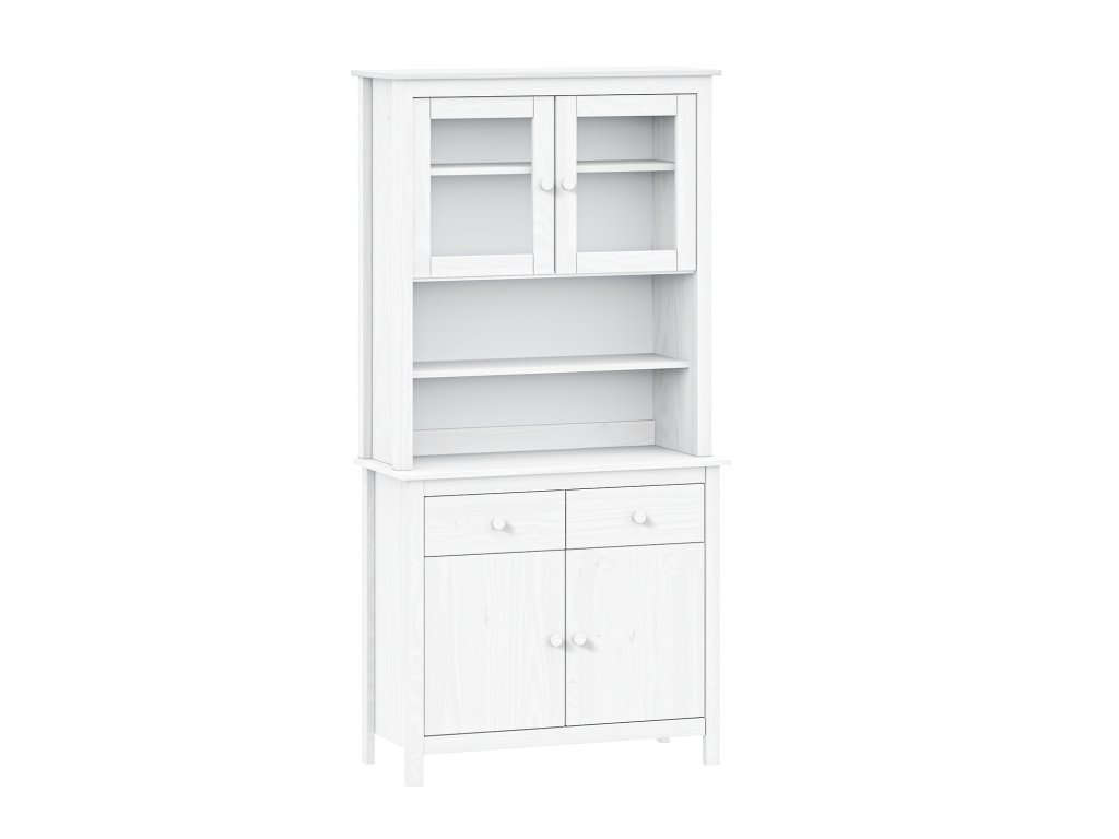 materiál masiv borovice, barevné provedení bílý lak 2 prosklené dveře, 1 police nástavec příborníku 8095BDoplňkové parametry
