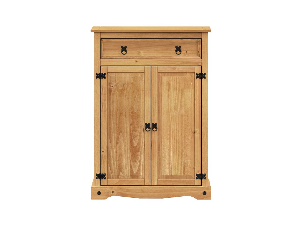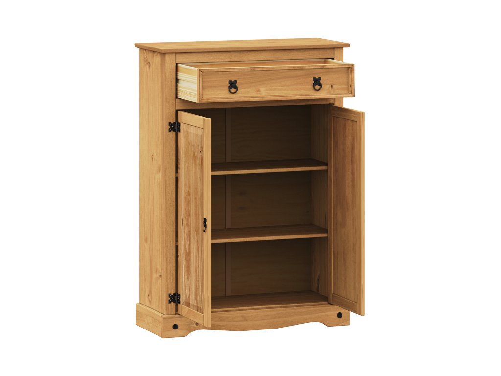 materiál masiv borovice voskovaná v medovém odstínu 1 zásuvka, 2 dvířka, kovové ozdobné úchytky 2 variabilní police součást sestavy CoronaDoplňkové parametry