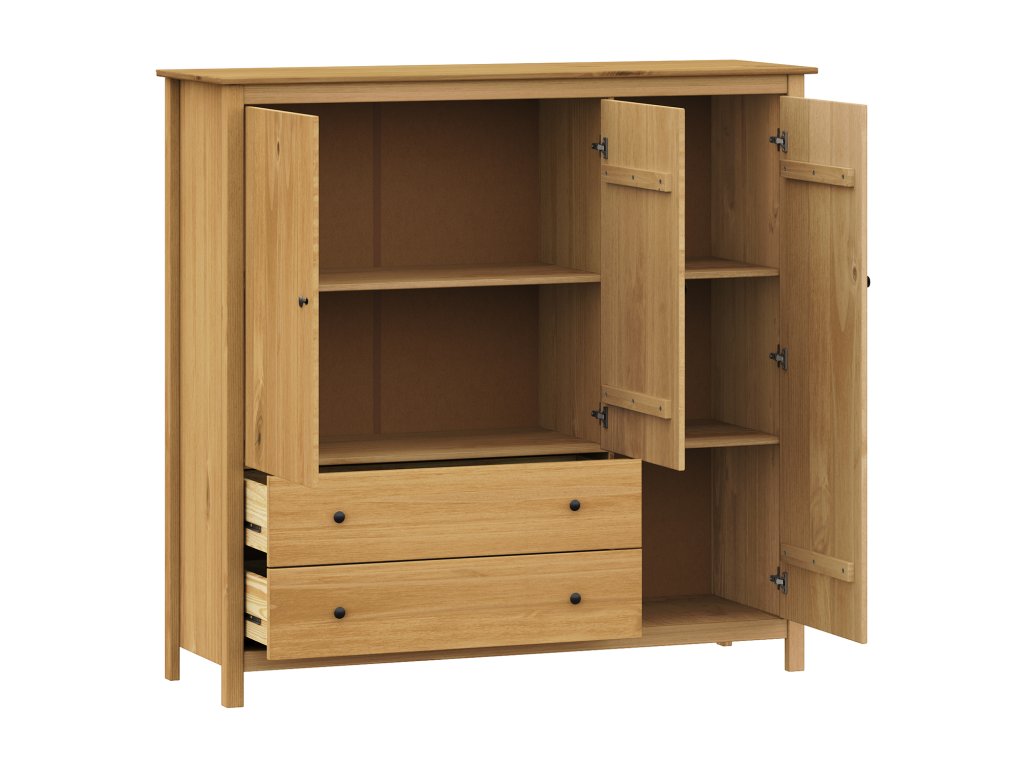 materiál masiv borovice voskovaná v medovém odstínu kovové úchytky v barevném provedení černěná mosaz 3 dvířka a 2 zásuvky s kovovými pojezdyDoplňkové parametry