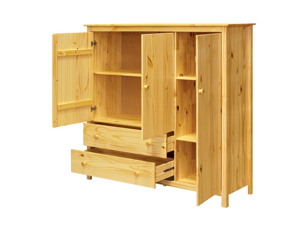 materiál masiv borovice, lakované provedení 3 dvířka a 2 zásuvky s kovovými pojezdyDoplňkové parametry