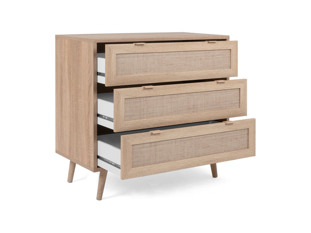 barevné provedení dub Sonoma čela zásuvek imitace lýkového výpletu, nohy masiv 3 zásuvky s kovovými pojezdyDoplňkové parametry