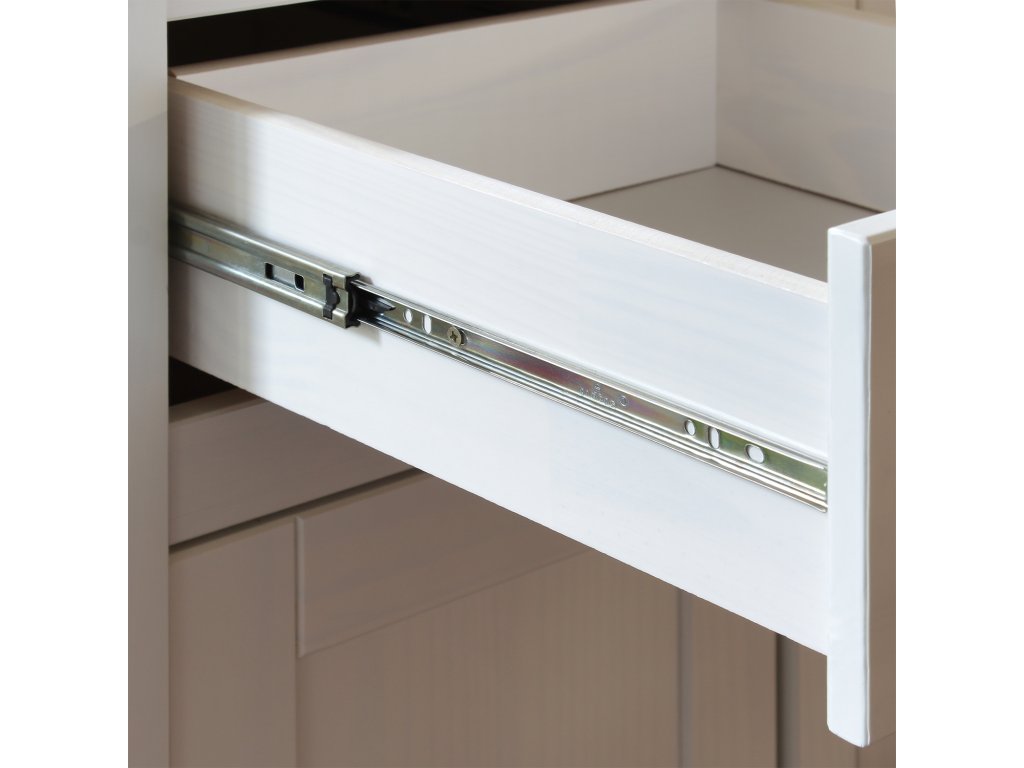 materiál masiv borovice, barevné provedení bílý / hnědý lak 3 zásuvky s kovovými úchytkami a pojezdy, 3 dveřeDoplňkové parametry