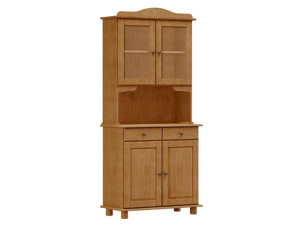materiál masiv borovice, barevné provedení dub v dolní části 2 dveře, 2 zásuvky s kovovými pojezdy v horní části dvoje prosklené dveřeDoplňkové parametry