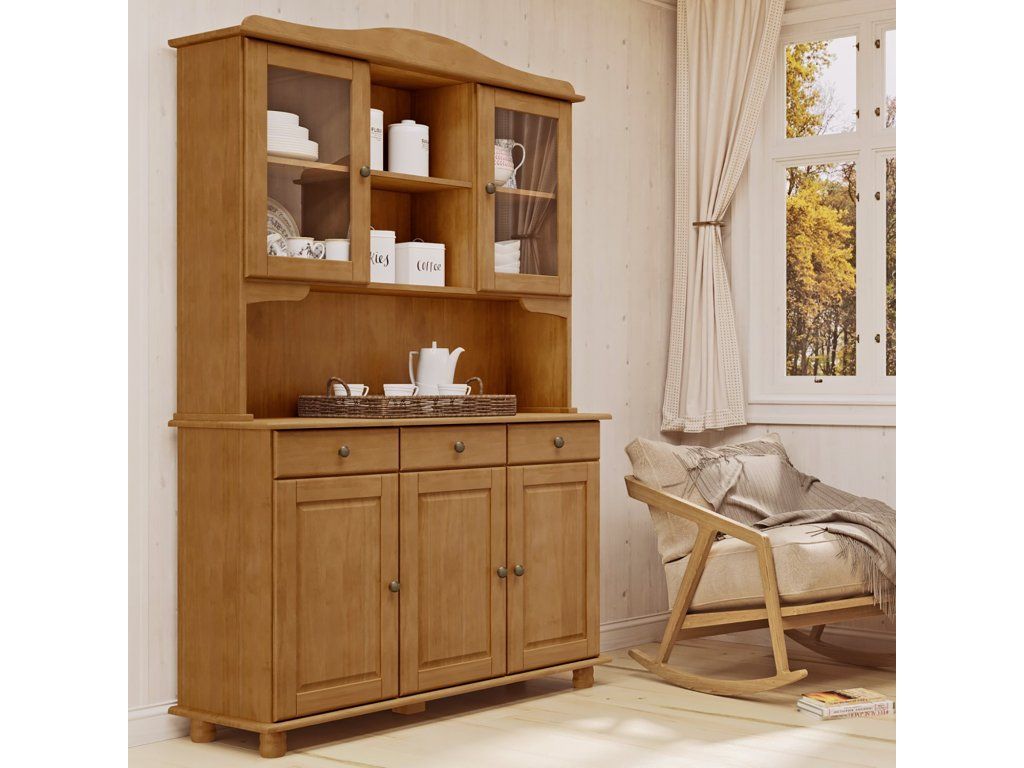 materiál masiv borovice, barevné provedení dub v dolní části 3 dveře, 3 zásuvky s kovovými pojezdy v horní části dvoje prosklené dveřeDoplňkové parametry
