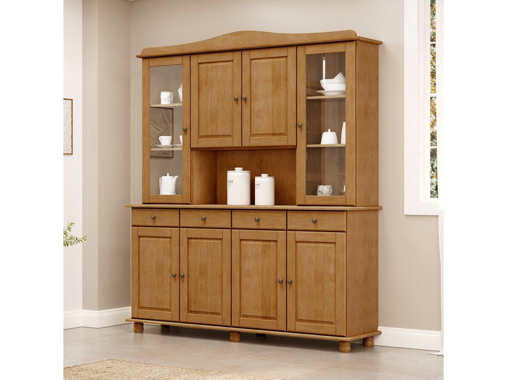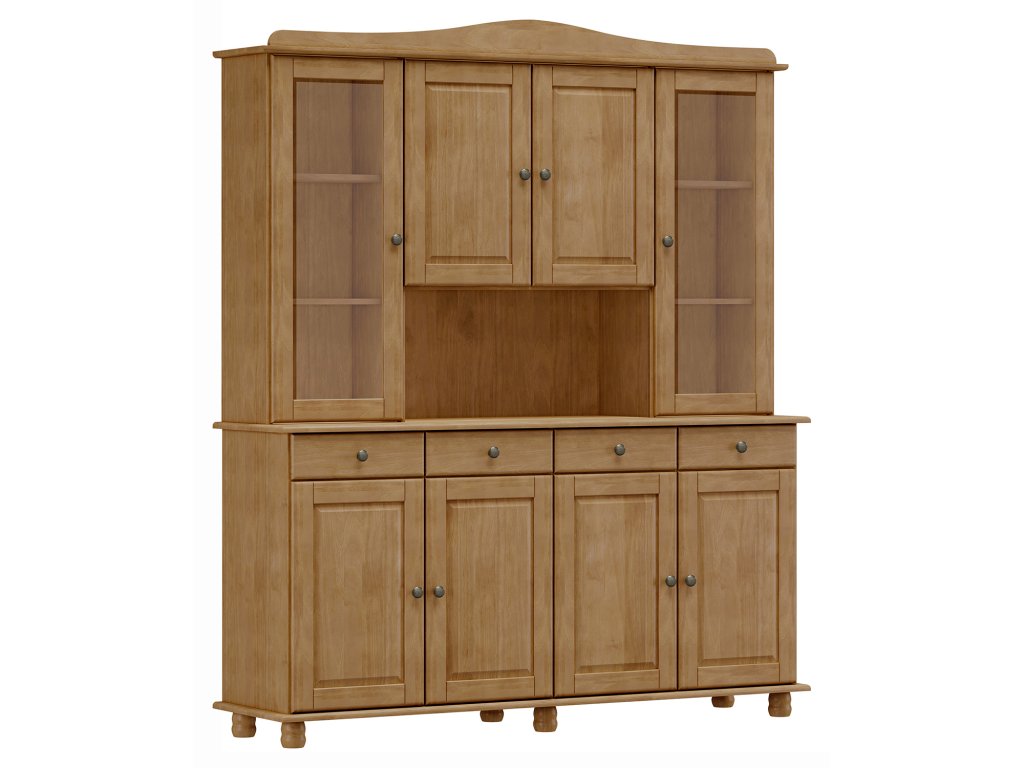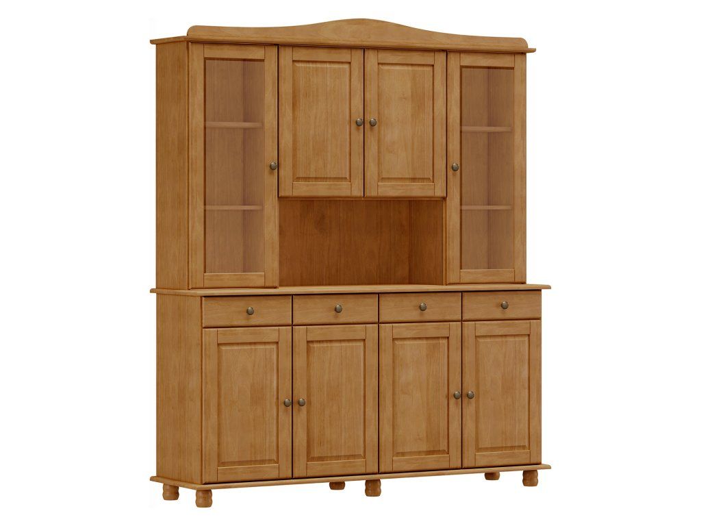 materiál masiv borovice, barevné provedení dub v dolní části 4 plné dveře, 4 zásuvky s kovovými pojezdy v horní části 2 prosklené a 2 plné dveřeDoplňkové parametry