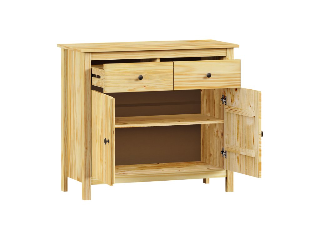 sestava příborníku TORINO 8095K a nástavce TORINO 8096K materiál masiv borovice, lakované provedení kovové úchytky v barevném provedení černěná mosaz příborník: 2 zásuvky s kovovými pojezdy, 2 plné dveře, 1 police nástavec: 2 prosklené dveře, 1 police rozměr příborníku (š/h/v) 90 × 40 × 80 cm rozměr nástavce (š/h/v) 90 × 33 × 100 cmDoplňkové parametry