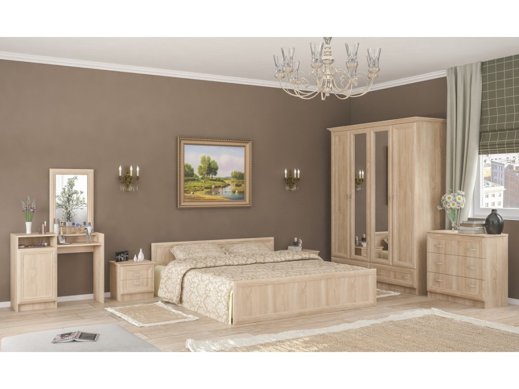 Toaletní stolek se zrcadlem z ložnicové řady. Jemné orámování na čele nábytku dodá Vašemu interiéru eleganci. Stolek je vyroben z kvalitní LTD desky s MDF prvky v barvě dub sonoma. Nabídka komponentů této sektorové řady umožňuje sestavit si nábytek do ložnice nebo studentského pokoje dle vlastních představ. Dodáváme v demontovaném stavu.Doplňkové parametry