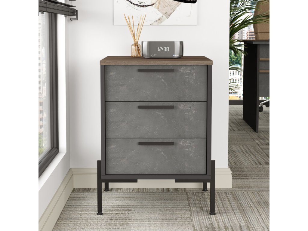 Výrobek představuje dokonalou symbiózu mezi funkčností a designem. S jeho industriálním charakterem a loftovým stylem, tato komoda skříňka je připravena stát se centrálním bodem vaší kanceláře nebo pracovny. Trojice zásuvek zajišťuje, že budete mít vždy po ruce vše, co potřebujete, zatímco jeho impozantní dekor dodává místnosti silný estetický příběh.
