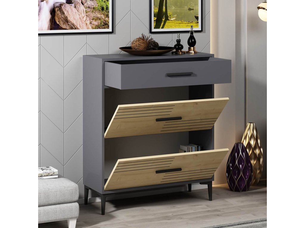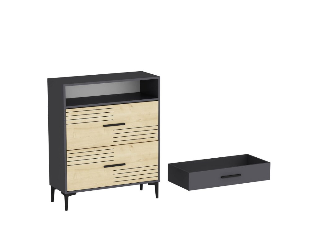 Skříňka je dodávána v demontovaném stavu s jednoduchým návodem na sestavení. Díky plastovým nožičkám je stabilní a chrání podlahu před poškrábáním. Její moderní kombinace dubu a antracitu dodává vašemu obývacímu pokoji stylový a elegantní vzhled. Tato skříňka je ideální volbou pro ty, kteří hledají praktické a designové úložné řešení.