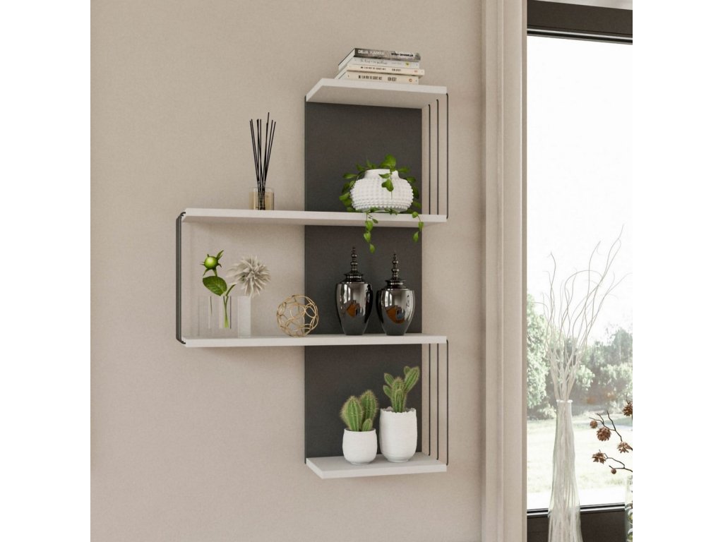Elegantní nástěnná police, která dodá vašemu obývacímu pokoji stylový a praktický prvek. Kombinace antracitové a bílé barvy vytváří moderní a nadčasový design, který se skvěle hodí do jakéhokoliv interiéru. Materiál je Melamin, VT laminát (18 mm) a další kvalitní materiály. Je navržena tak, aby poskytovala praktický úložný prostor na knihy, dekorace nebo jiné drobnosti, a zároveň přidala estetickou hodnotu vašemu obývacímu pokoji. Díky kvalitním materiálům, jako je melamin a laminát, je police odolná a snadno se udržuje. Dodáváme v demontovaném stavu.