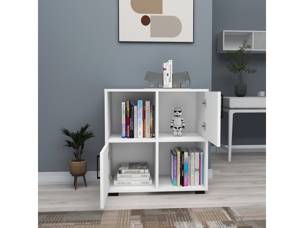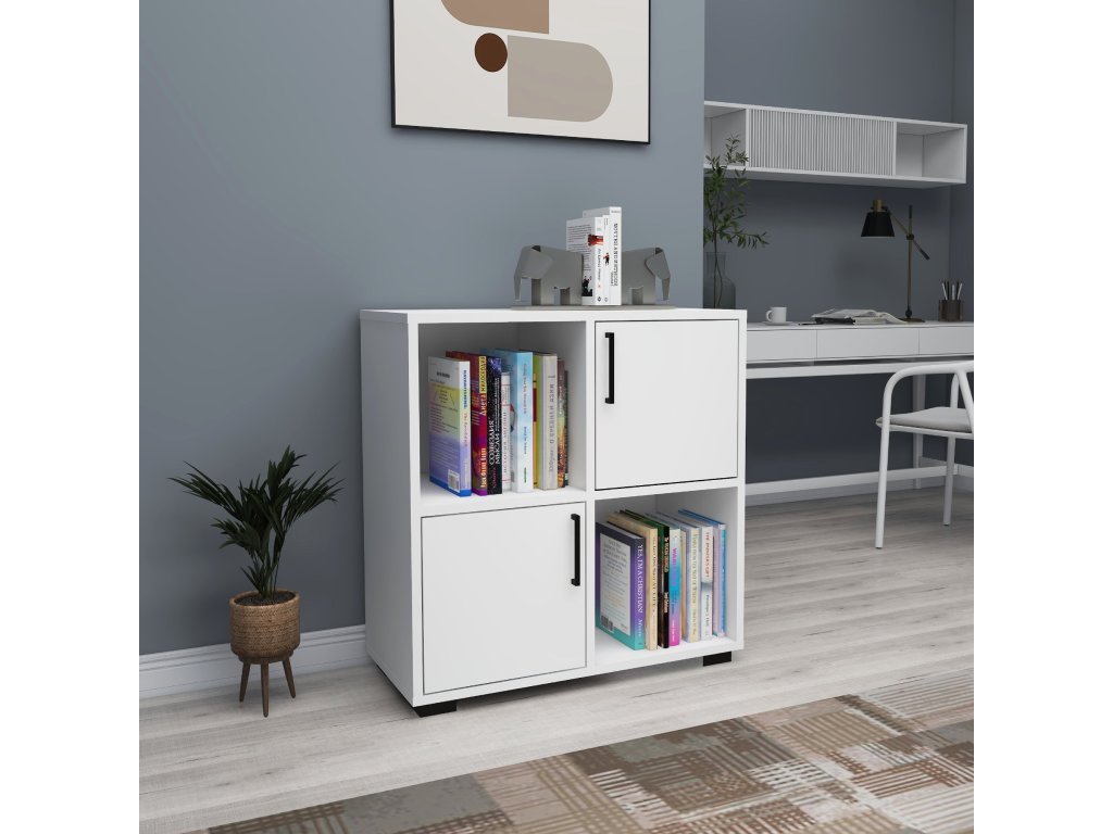 Knihovna přináší praktický úložný prostor a elegantní vzhled, který zapadne do každého obývacího pokoje. Její robustní konstrukce zaručuje dlouhou životnost, zatímco kompaktní rozměry a plná dvířka pomáhají udržet váš prostor organizovaný a čistý. Pořiďte si knihovnu a dodejte svému interiéru styl a praktičnost!