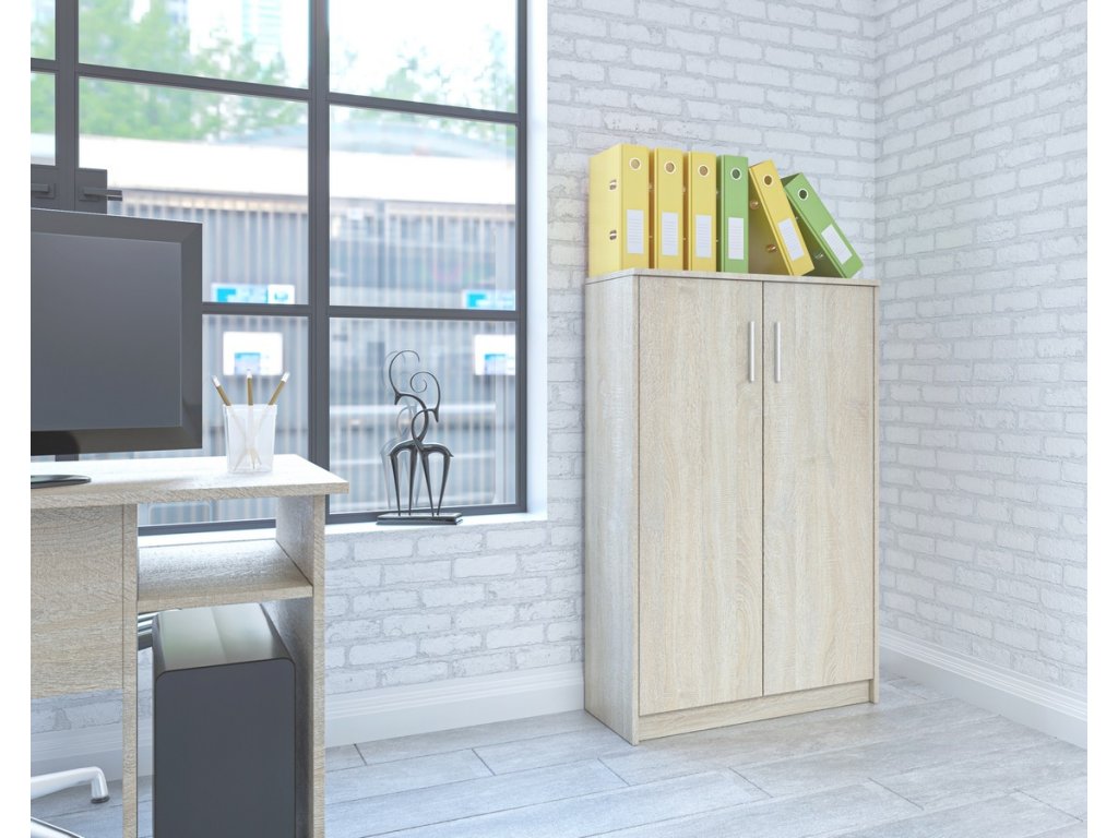 Praktická komoda dvoudveřová vhodná na zakládaní šanonů, knih a jiných pracovních dokumentů. Korpus i dvířka jsou z kvalitní LTD v barvě dub sonoma. Dodáváme v demontovaném stavu.Doplňkové parametry
