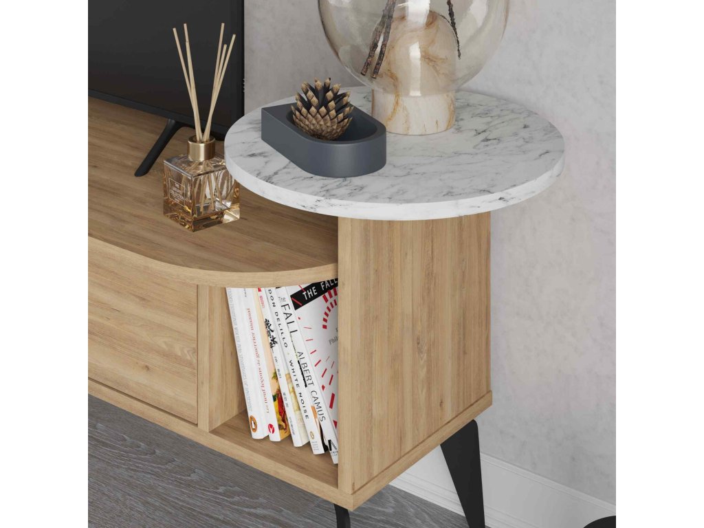 TV stolek v elegantní kombinaci dubu a bílé Carrara