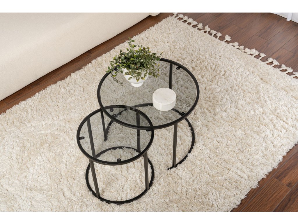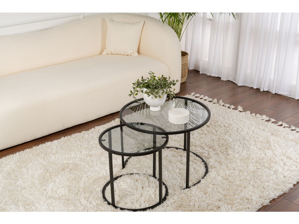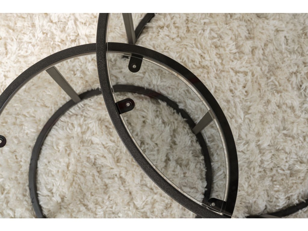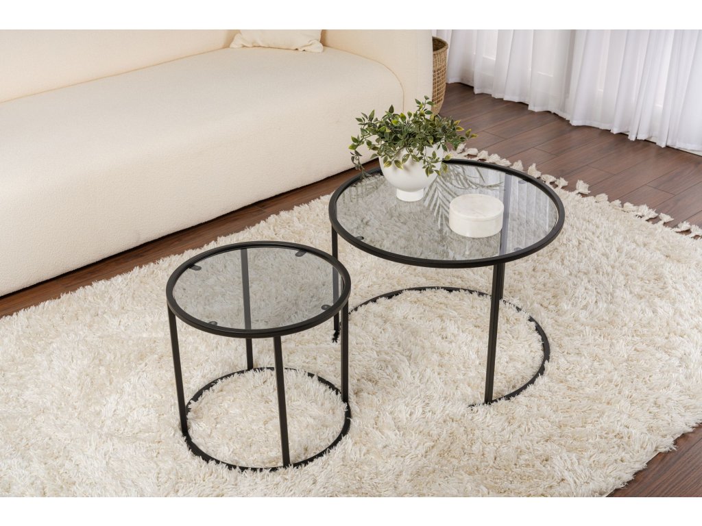 Proměňte svůj obývací pokoj ve stylový a sofistikovaný prostor s naší úžasnou sadou konferenčních stolků. Tato sada, vyrobená ze 100% tvrzeného skla a s robustním kovovým rámem, vyzařuje eleganci a odolnost. Elegantní design a moderní barevná paleta černé a šedé okamžitě pozvednou váš domov a vytvoří elegantní a příjemnou atmosféru pro vás i vaše hosty.