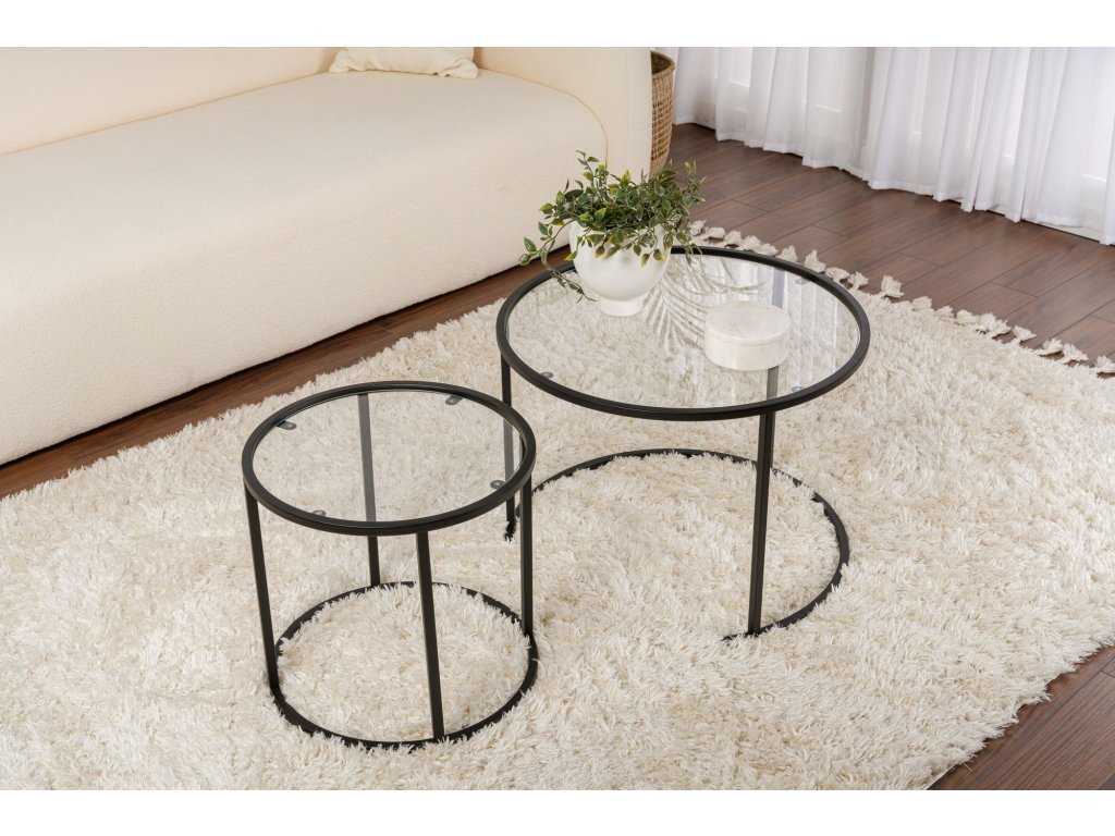 Aurum sada kulatých konferenčních stolků, černá / transparent