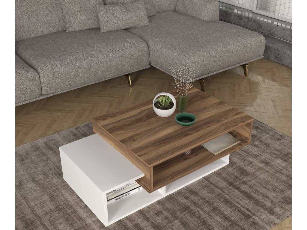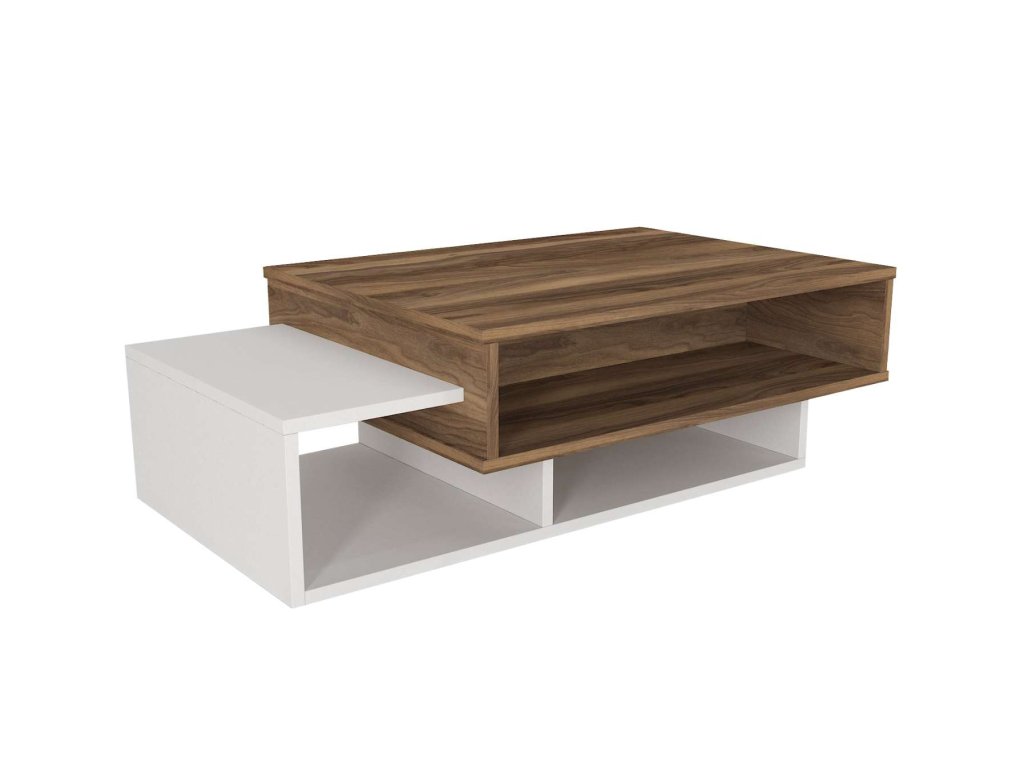 Představujeme konferenční stolek, který přináší do vašeho obývacího pokoje eleganci a funkčnost. Tento stylový nábytek v kombinaci bílé a ořechové barvy je navržen tak, aby poskytoval praktické a estetické řešení pro vaše potřeby.