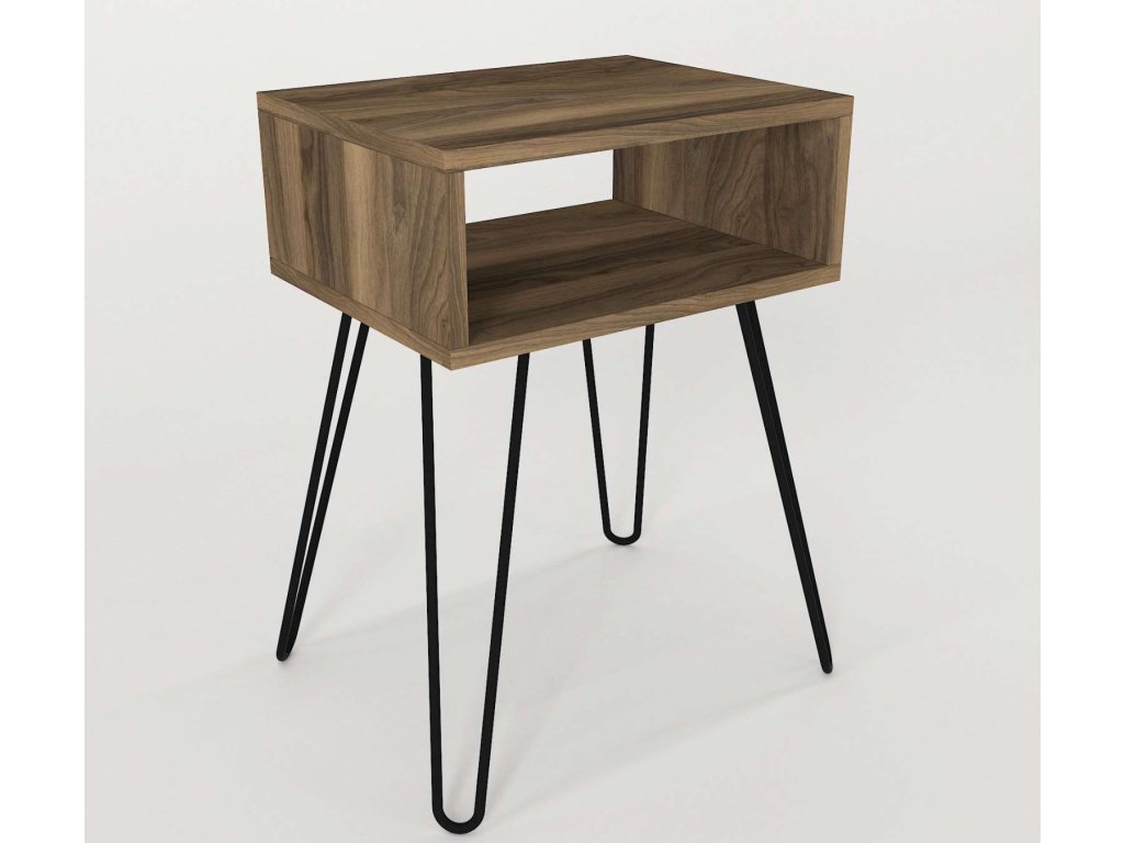 Stolek vyniká svým ořechovým designem a obdélníkovým tvarem, který je nejen praktický, ale i esteticky atraktivní. Díky odkládací polici poskytuje dostatek úložného prostoru pro vaše knihy, časopisy nebo dekorace. Kombinace LTD materiálu o tloušťce 18 mm a kovu zajišťuje pevnost a dlouhou životnost tohoto stolku.
