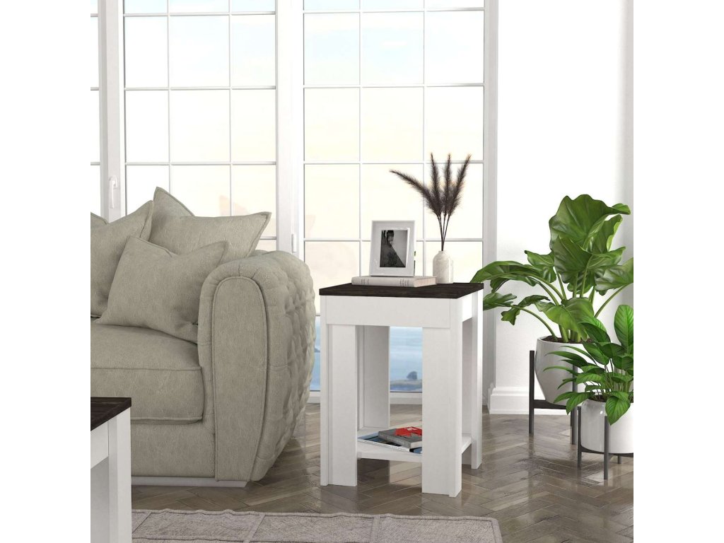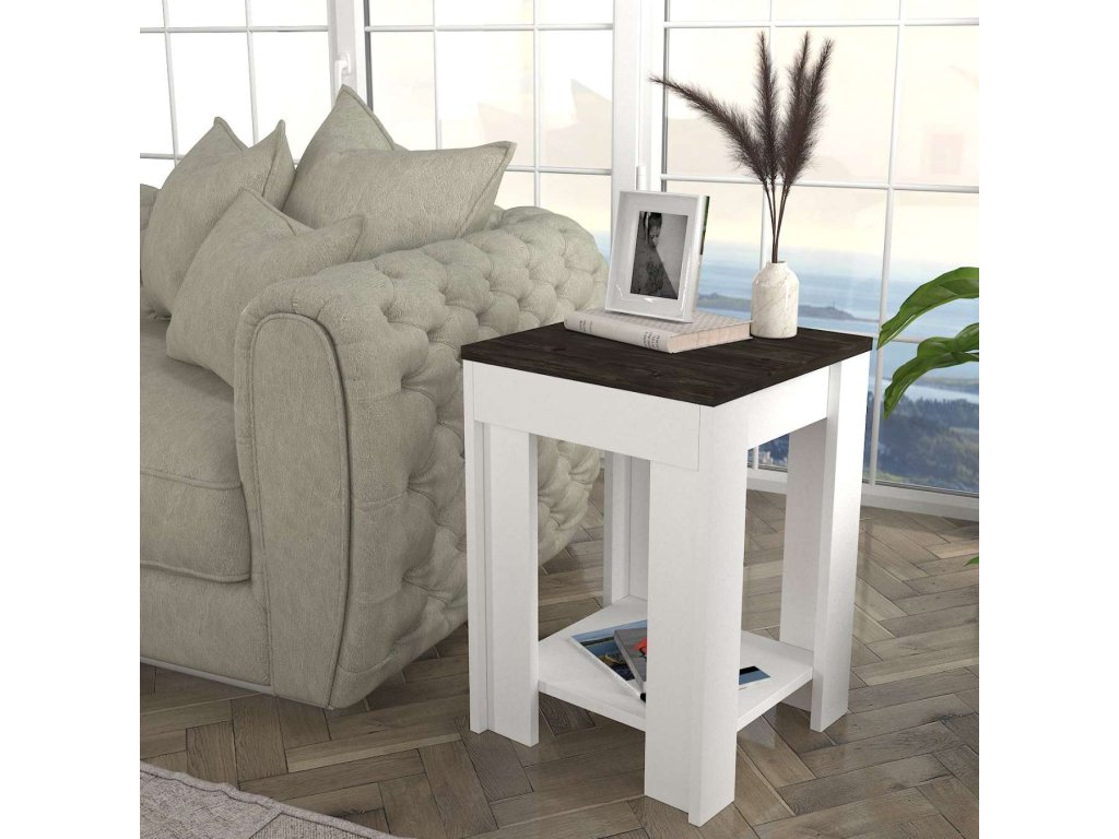 Představujeme vám - moderní příruční stolek, který je ideálním doplňkem pro váš obývací pokoj. Tento stolek je vyroben z kvalitního LTD materiálu a nabízí kombinaci bílé a tmavě hnědé barvy, což mu dodává elegantní a nadčasový vzhled.