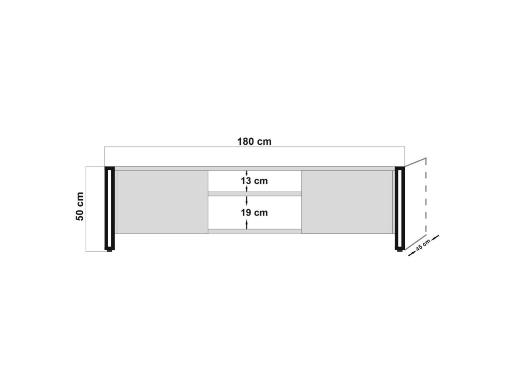 Stolek nabízí prostorné úložné řešení s kombinací plných dvířek a regálku. Uzavřený prostor je ideální pro uskladnění věcí, které chcete mít mimo dohled, zatímco regálek poskytuje otevřený prostor pro dekorace, knihy nebo multimediální zařízení.
