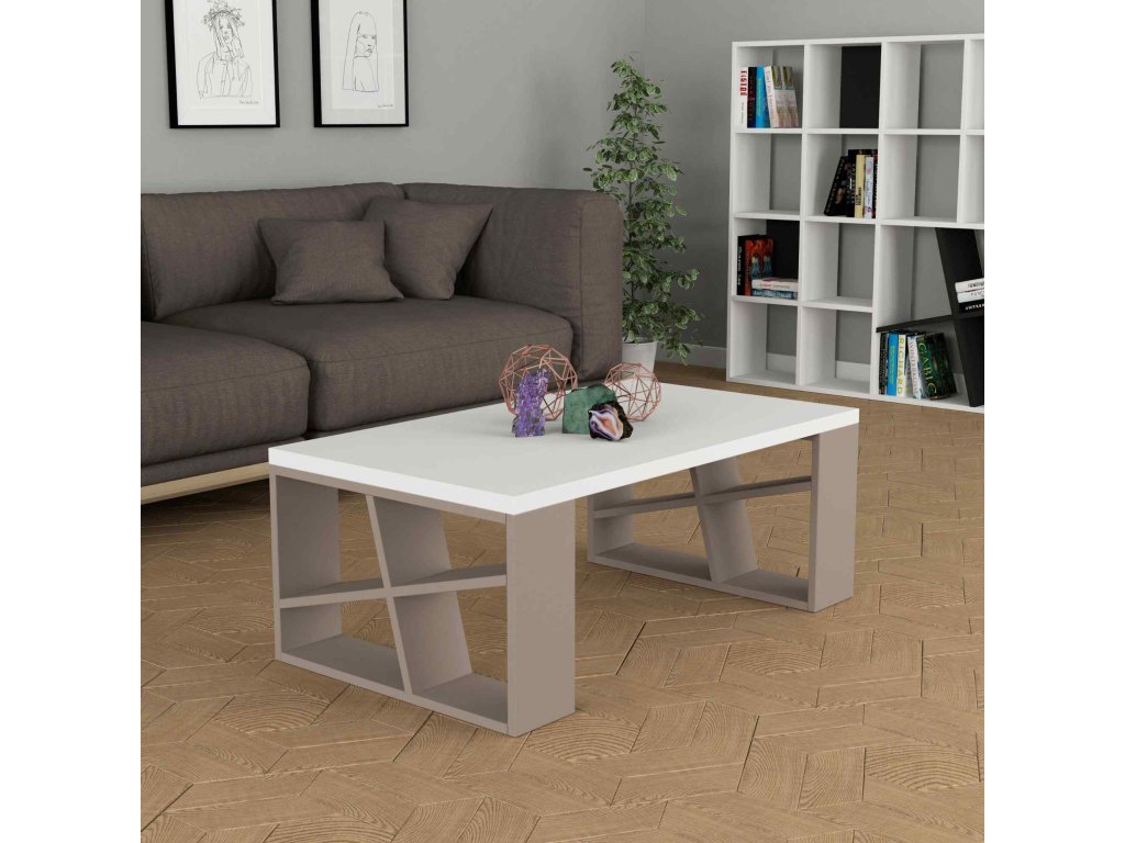 Představujeme Vám , konferenční stolek, který je dokonalým spojením moderního designu a funkčnosti, ideální pro každý obývací pokoj. Tento stolek, v elegantní kombinaci bílé a moka barvy přinese světlo a styl do vašeho interiéru.