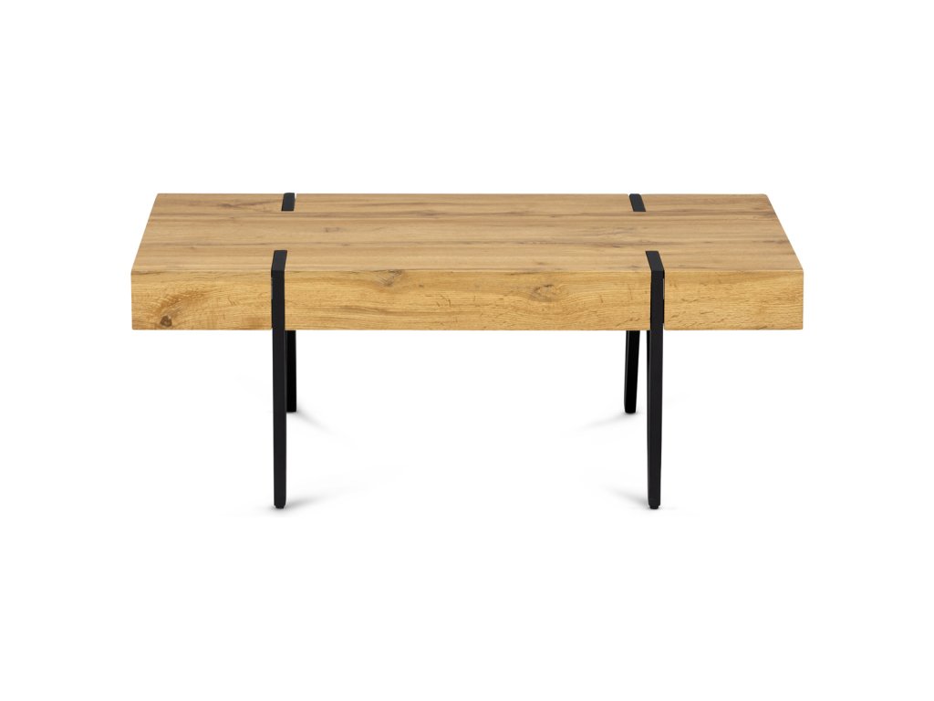 Moderní konferenční stolek z 1,5 cm tlusté MDF desky v dekoru divoký dub a s výškou lubu 10 cm. Podnož je z pevného kovu a je lakovaná matnou černou barvou. Součástí designové podnože jsou černé plastové kluzáky, které snižují riziko poškození Vaší podlahy.