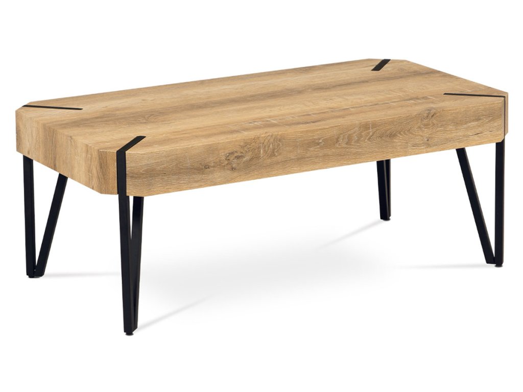 Konferenční stolek 110x60x42, MDF bělený dub, kov černý mat