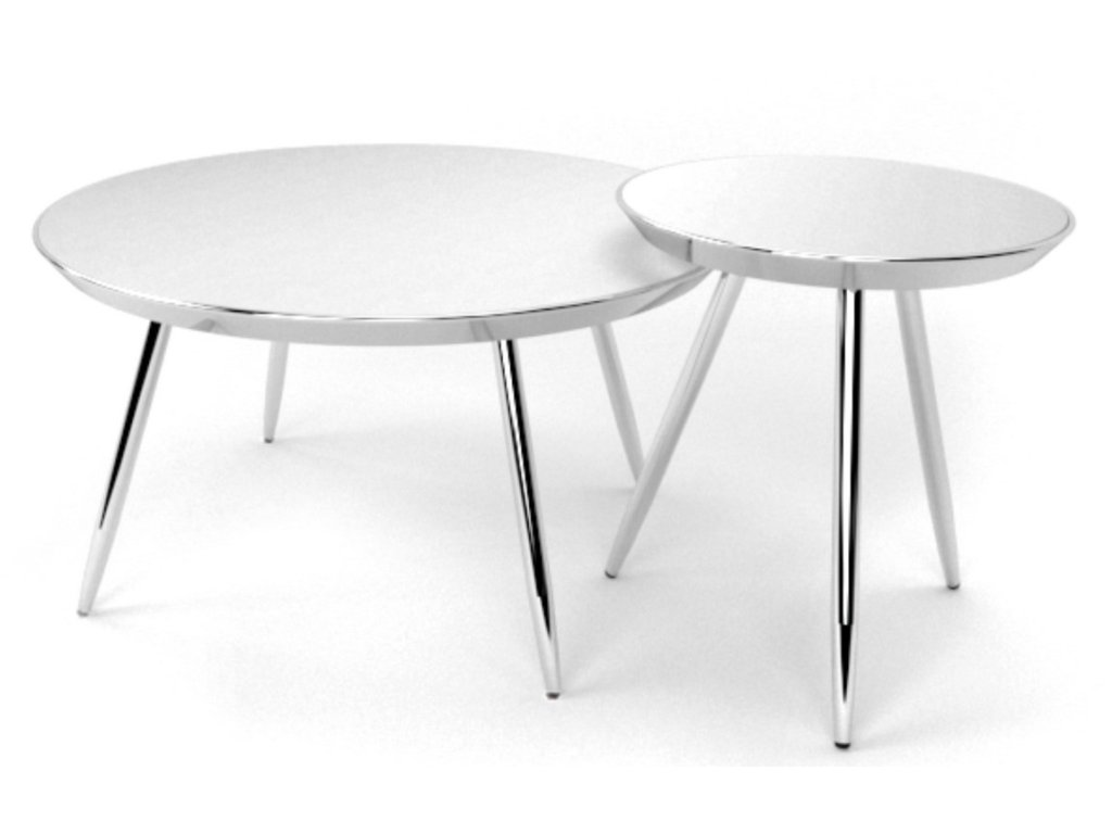 Kulatý konferenční stolek v moderním stylu glamour. Konstrukce je z kovu - chróm, na vrchní desce je zrcadlo. Tento stylový kousek v jednoduchém designu se bude vyjímat v každém interiéru. Dodáváme v demontovaném stavu.Doplňkové parametry
