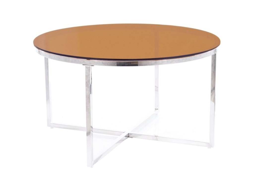Konferenční stolek v moderním stylu glamour. Konstrukce je z nerezové oceli ve stříbrné barvě, vrchní deska je z tvrzeného kouřového skla v barvě jantaru. Tento stylový kousek v netradičním designu se bude vyjímat v každém interiéru. Dodáváme v demontovaném stavu.Doplňkové parametry