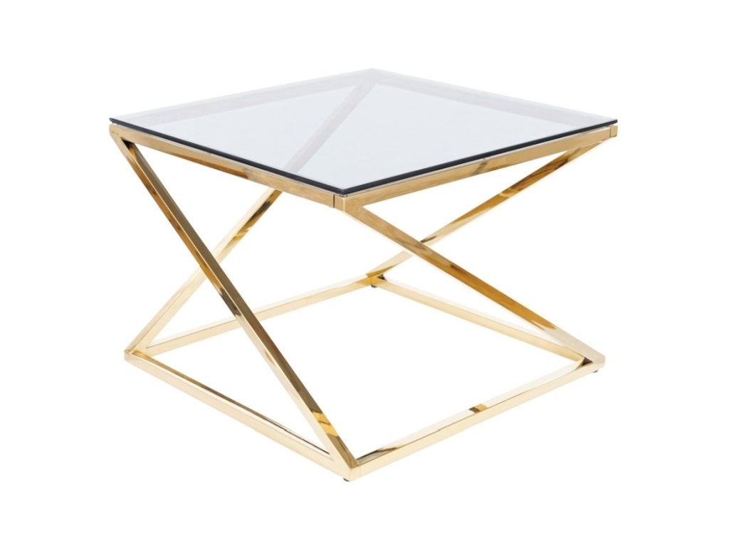 Konferenční stolek v moderním stylu glamour. Konstrukce je z kovu ve zlaté barvě, vrchní deska je z tvrzeného kouřového skla. Tento stylový kousek v netradičním designu se bude vyjímat v každém interiéru. Dodáváme v demontovaném stavu.Doplňkové parametry