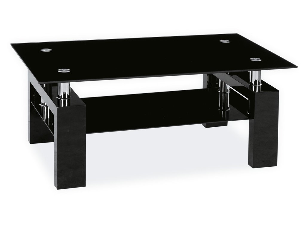 Stylový konferenční stolek v moderním provedení. Konstrukce MDF je lakovaná černou barvou, vrchní deska ( 8 mm ) a polička ( 6 mm )jsou z tvrzeného skla černé barvy. Tento stolek lze objednat i v jiných provedení materiálu a barev.Doplňkové parametry