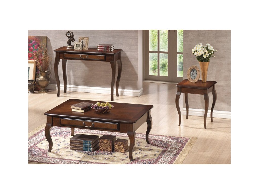 Elegantní konferenční stolek z kolekce PADOVA v rustikálním stylu. Zajímavý vzhled stolku vyzdvihují jemné tvary a ozdobný vzorek s dvojbarevným odstínem. Deska stolku je vyrobena z kvalitní MDF v kombinaci s přírodní dýhou, nohy stolku jsou ze dřeva. Stolek je v barvě tmavý ořech. Rozměry - 45 x 45 x 55 cm.Doplňkové parametry