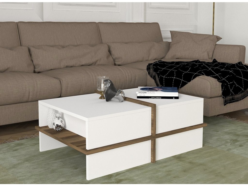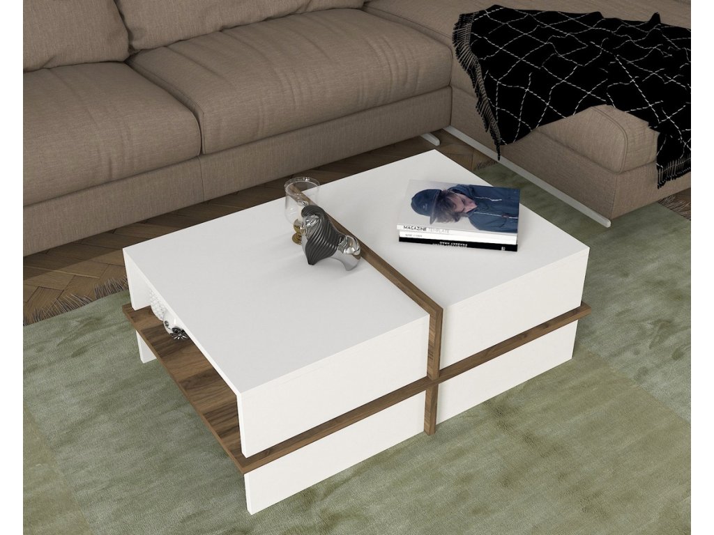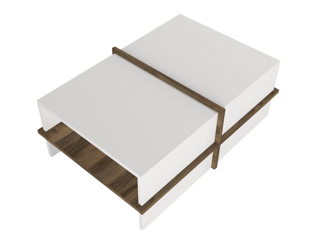 Konferenční stolek je vyroben z kvalitního lamina o tl.18 mm hraněné PVC páskou, odolného proti poškrábání v kombinaci barev matná bílá/vlašský ořech. Dodáváme v demontovaném stavu.Doplňkové parametry